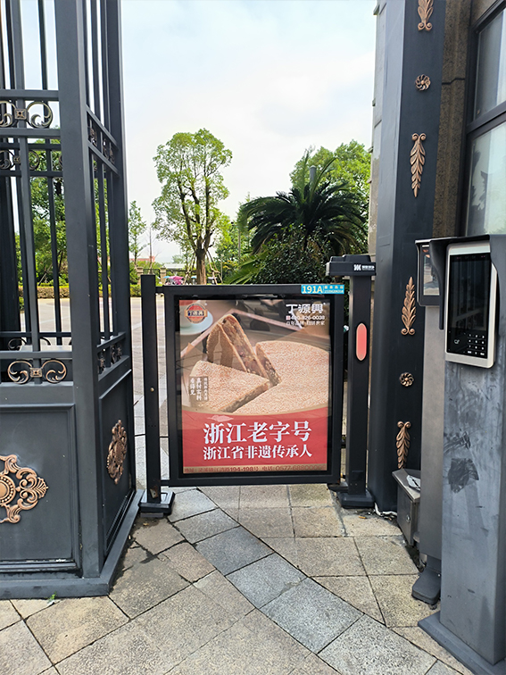 社區是居住聚集地,城市構成的核心細胞,成為最能夠貼近消費群體的區域之一,人行通道廣告門,它是通道門禁的一種形式,主要用于小區人行通道出入口,小區內部通道,商業區人行通道,酒店過道等一些需要控制人流出入的場所,因其在傳統的鐵藝門上增加了獨特廣告燈箱,被稱為人行通道廣告門。與一般的通道門禁不同的是,它與廣告傳播完美結合,在傳統功能的基礎上增加了廣告效益,讓精明的廣告商看到了其中的商機!